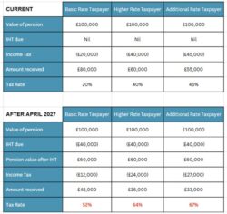 The situation is different where a pension holder dies after the age of 75, as the beneficiary is taxed at their marginal rate of income tax on monies drawn from the pension. From April 2027, the value of the pension could potentially be subject to IHT at 40%, and funds drawn from the inherited pension could then also be subject to income tax up to 45% in the hands of the beneficiary.